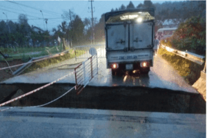 Tại xã A Lưới 2, mưa lớn kéo dài trong những ngày qua đã gây sạt lở taluy âm tuyến đường dẫn vào lòng hồ thủy điện A Lưới, đoạn qua địa bàn thôn Âr Bả, với chiều dài gần 10m.